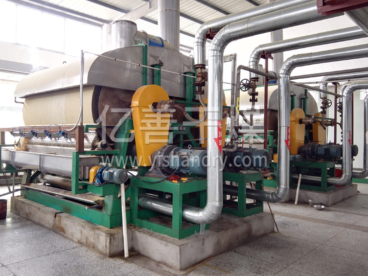产品概述:滚筒干燥机是一种内加热传导型转动连续干燥设备。旋转的滚筒通过其下部料槽,粘附着一厚度的料膜,热量通过管道输送至滚筒内壁,传导到滚筒外壁,再传导给料膜,使料膜中的湿得到蒸发、脱湿、使含湿分的物料得到干燥。干燥好的物料被装置在滚筒表面的刮刀铲离滚筒,到置于…